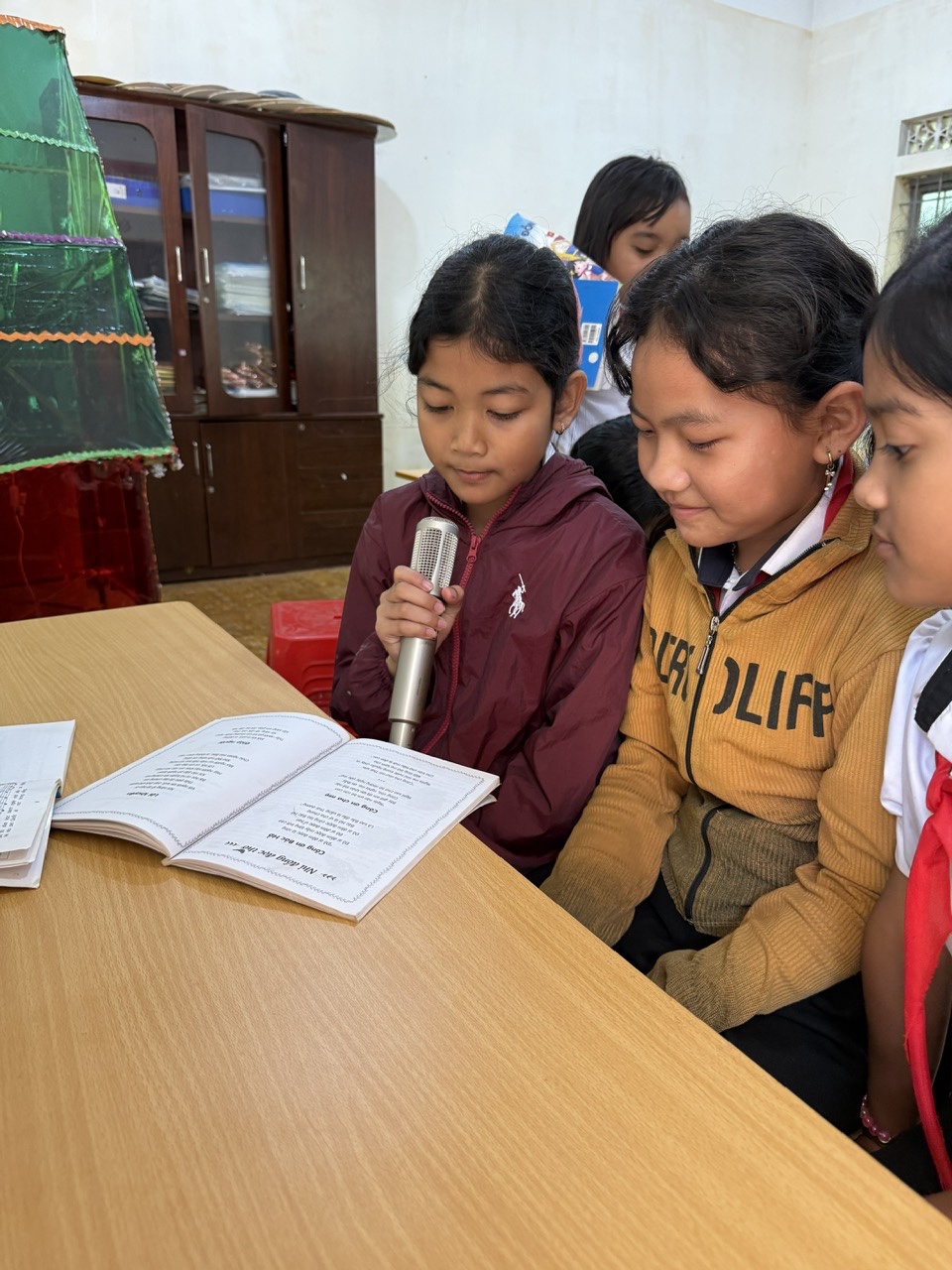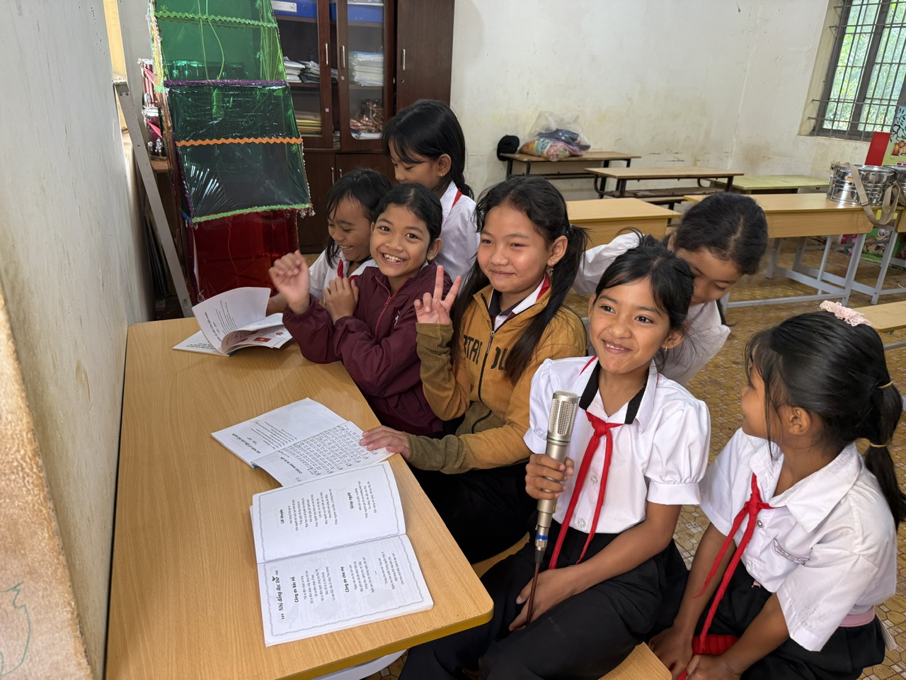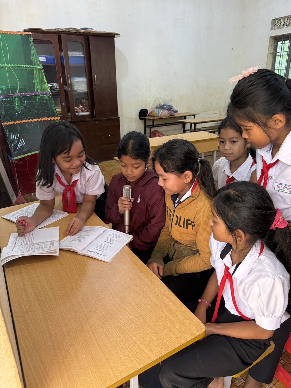 Đội phát thanh măng non Liên Đội Ama Jhao tuyên truyền về ngày 20/11.