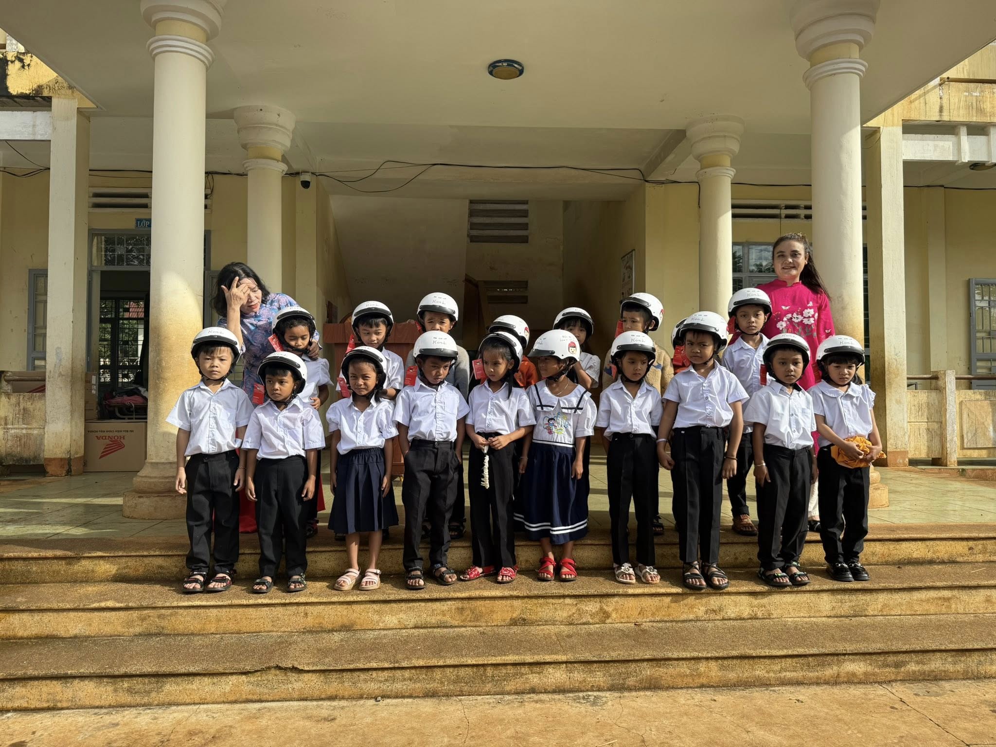 Học Sinh lớp 1 trường tiểu học Ama Jhao được tặng mũ bao hiểm
