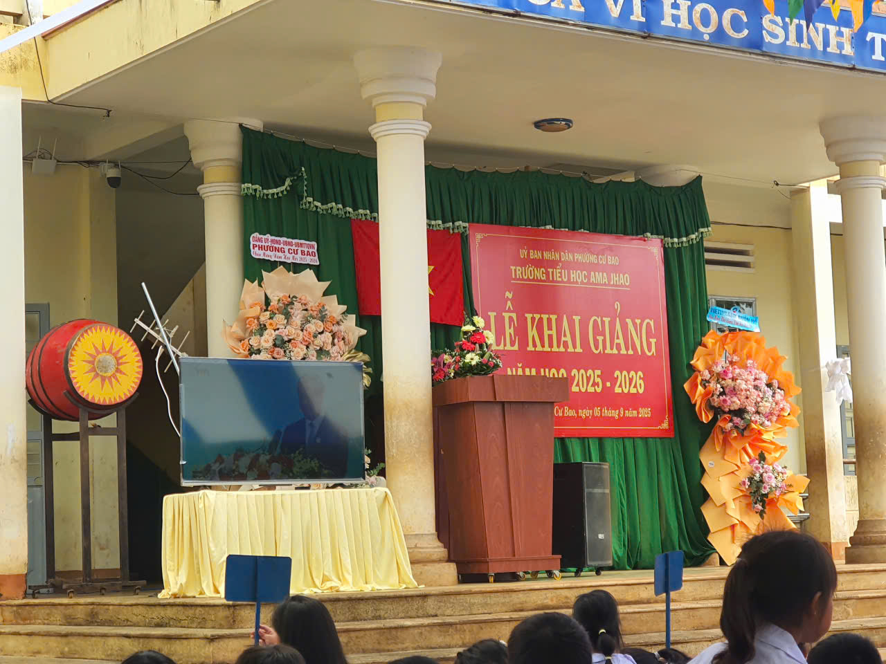 Hòa chung không khí tưng bừng của ngày hội toàn dân đưa trẻ đến trường, sáng ngày 05/9/2025, Trường Tiểu học A Ma Jhao đã long trọng tổ chức Lễ khai giảng năm học mới 2025–2026. Đây là năm học đầu tiên lễ khai giảng được tổ chức đồng bộ trên toàn quốc, gắn với kỷ niệm 80 năm thành lập Bộ Quốc gia Giáo dục (nay là Bộ Giáo dục và Đào tạo).. Buổi lễ diễn ra trong không khí trang trọng, vui tươi và đầy ắp niềm hân hoan của thầy và trò nhà trường.