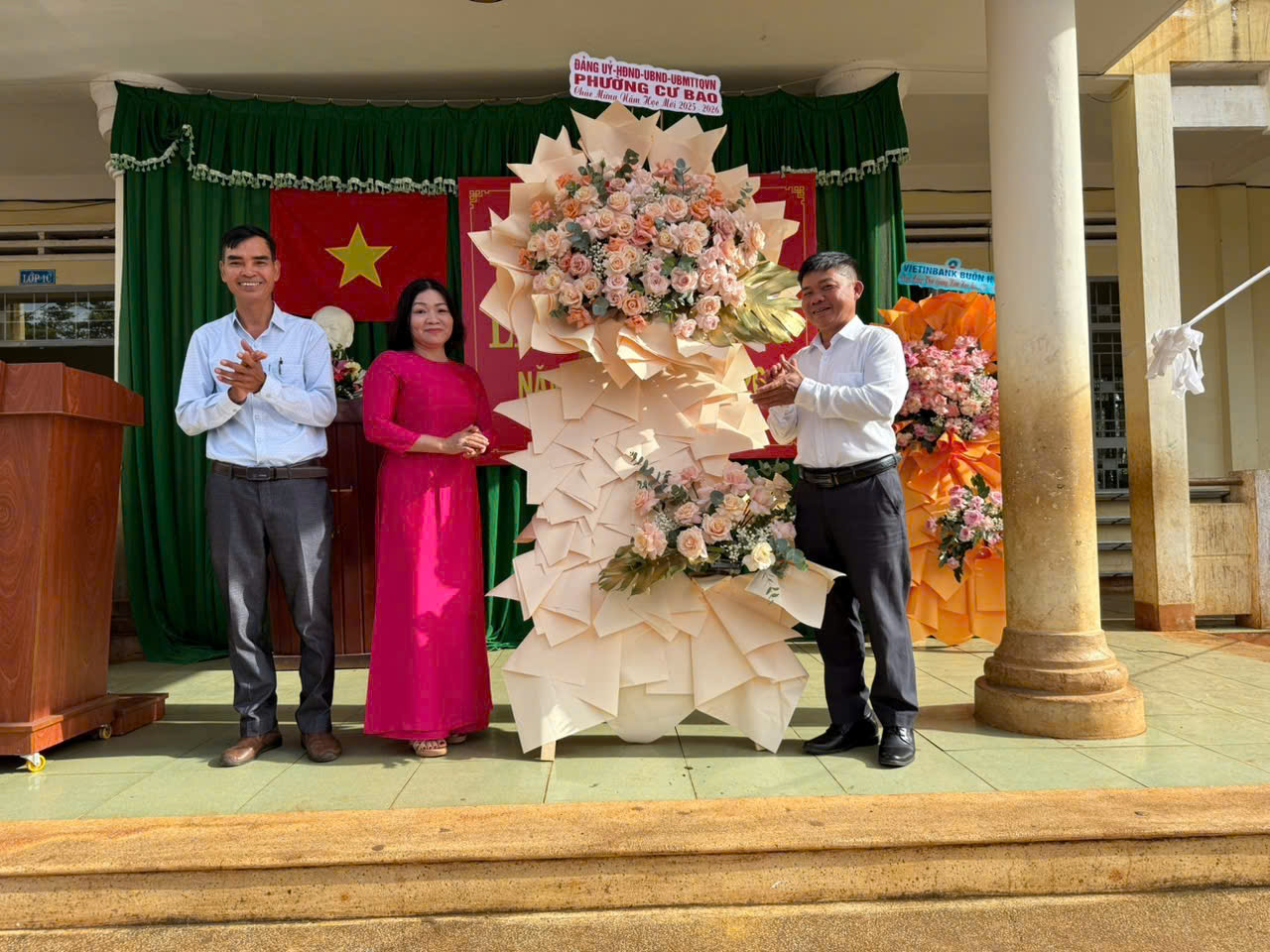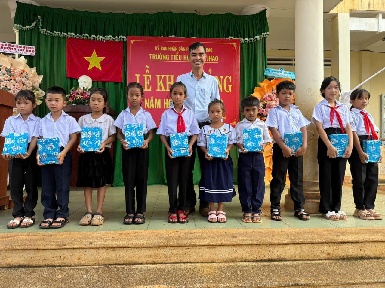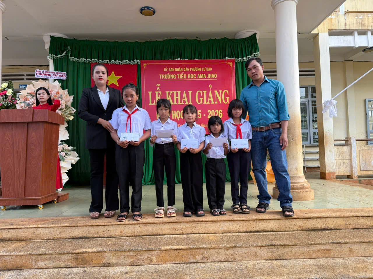 + Đại điện HĐND-UBND-MTTQ VN phường Cư Bao trao quà mừng khai giảng năm học mới 2025-2026