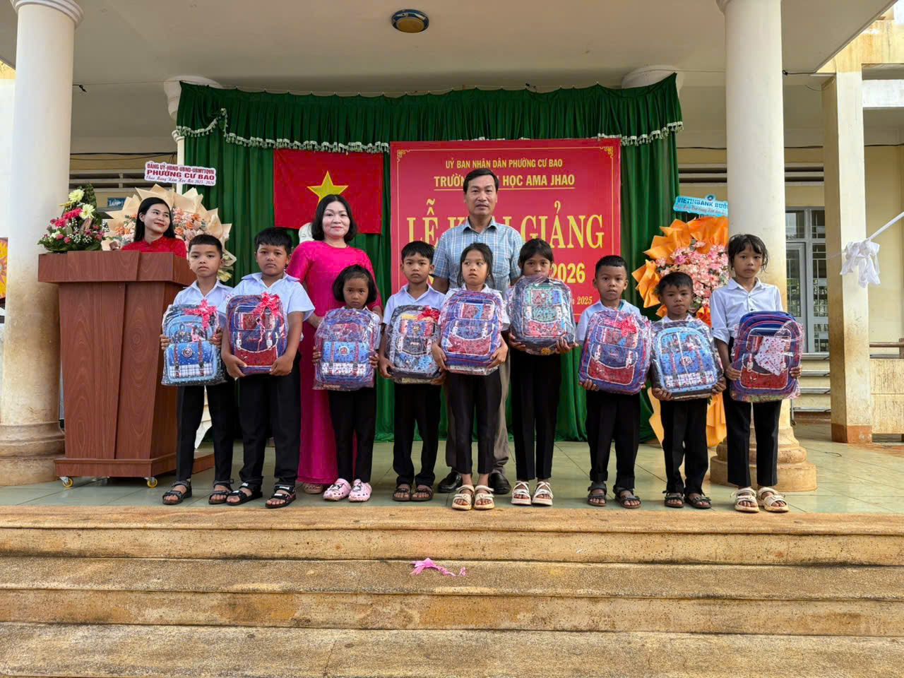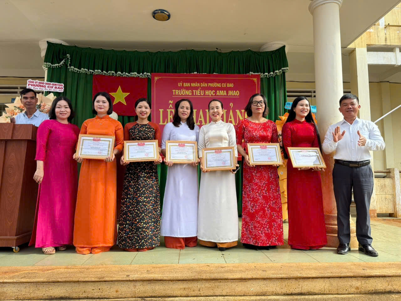 Đến dự buổi lễ, nhà trường vinh dự được đón tiếp lãnh đạo Đảng ủy, HĐND, UBND, UBMTTQVN phường Cư Bao; đại diện Hội Cha mẹ học sinh; cùng toàn thể cán bộ, giáo viên, nhân viên và hơn 320 em học sinh. Đặc biệt, năm học này trường hân hoan chào đón 57 em học sinh lớp 1 chính thức trở thành thành viên mới của mái nhà chung Ama Jhao.