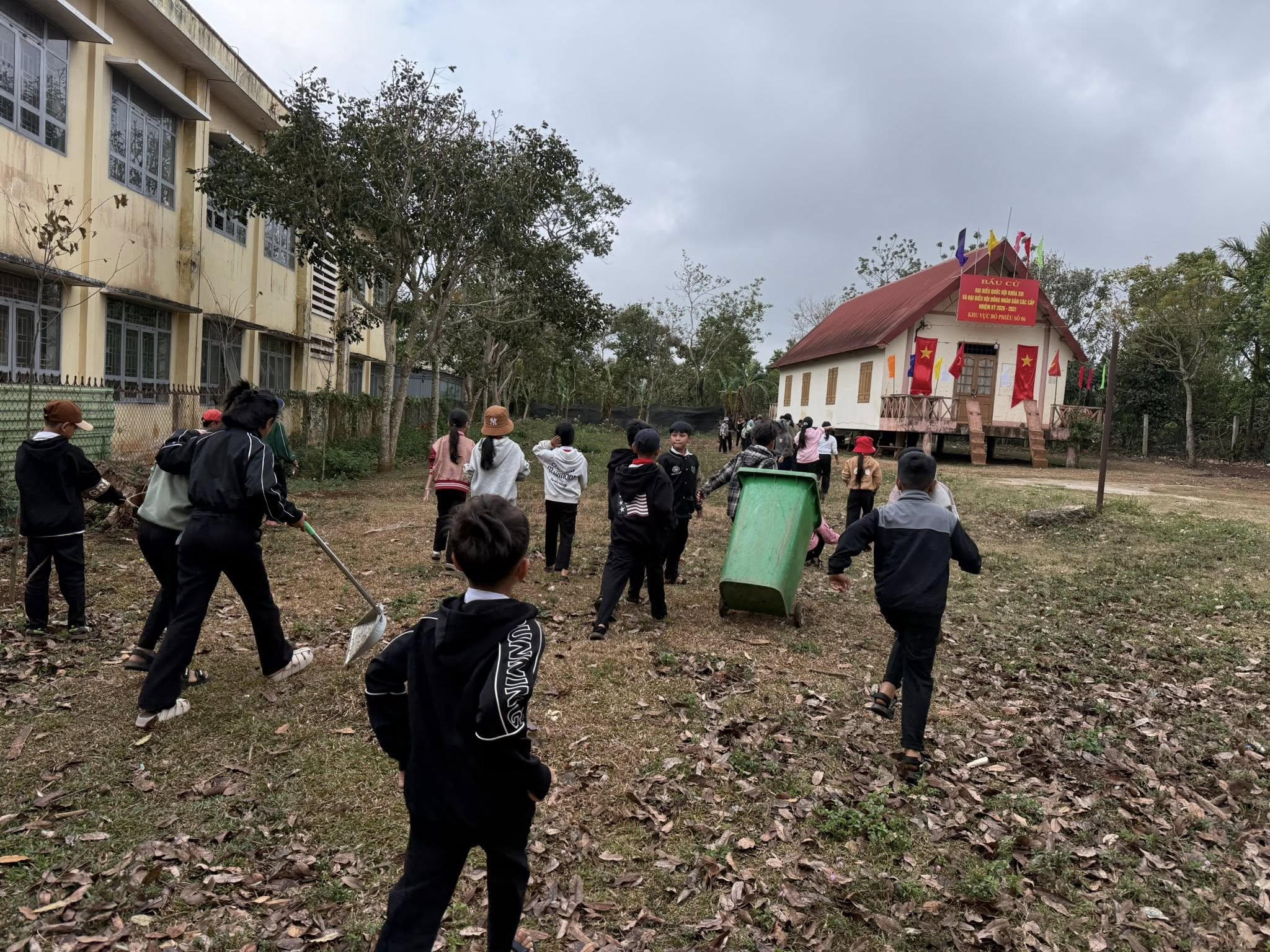 Hoạt động được thực hiện với sự tham gia nhiệt tình của các thầy cô giáo và các em đội viên, nhi đồng. Các em đã cùng nhau quét dọn sân trường, nhặt rác, làm sạch khu vực xung quanh nhà cộng đồng, góp phần giữ gìn môi trường xanh – sạch – đẹp.