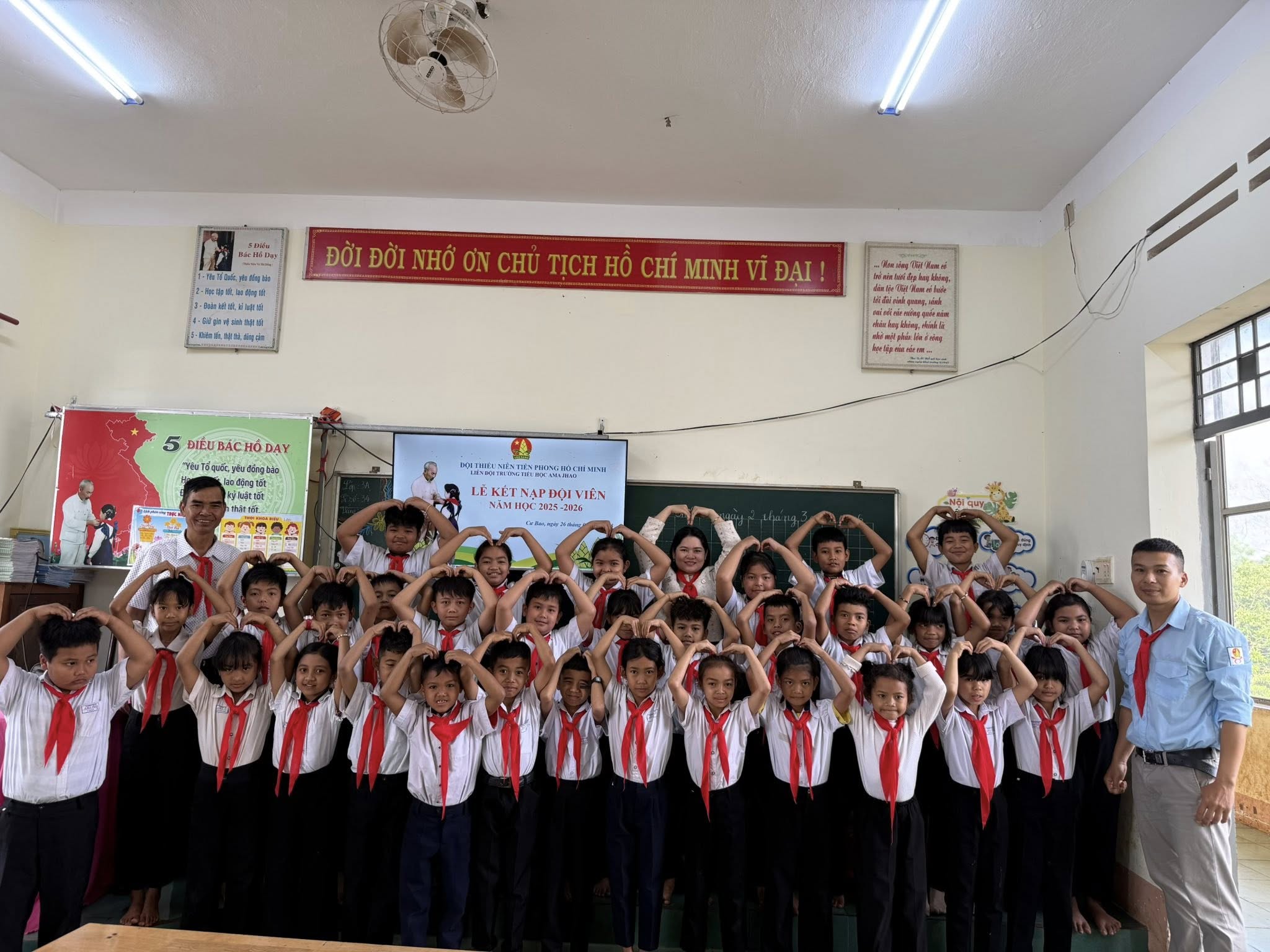 Liên đội Trường Tiểu học Ama Jhao tổ chức lễ kết nạp Đội viên cho học sinh lớp 3 năm học 2025–2026.