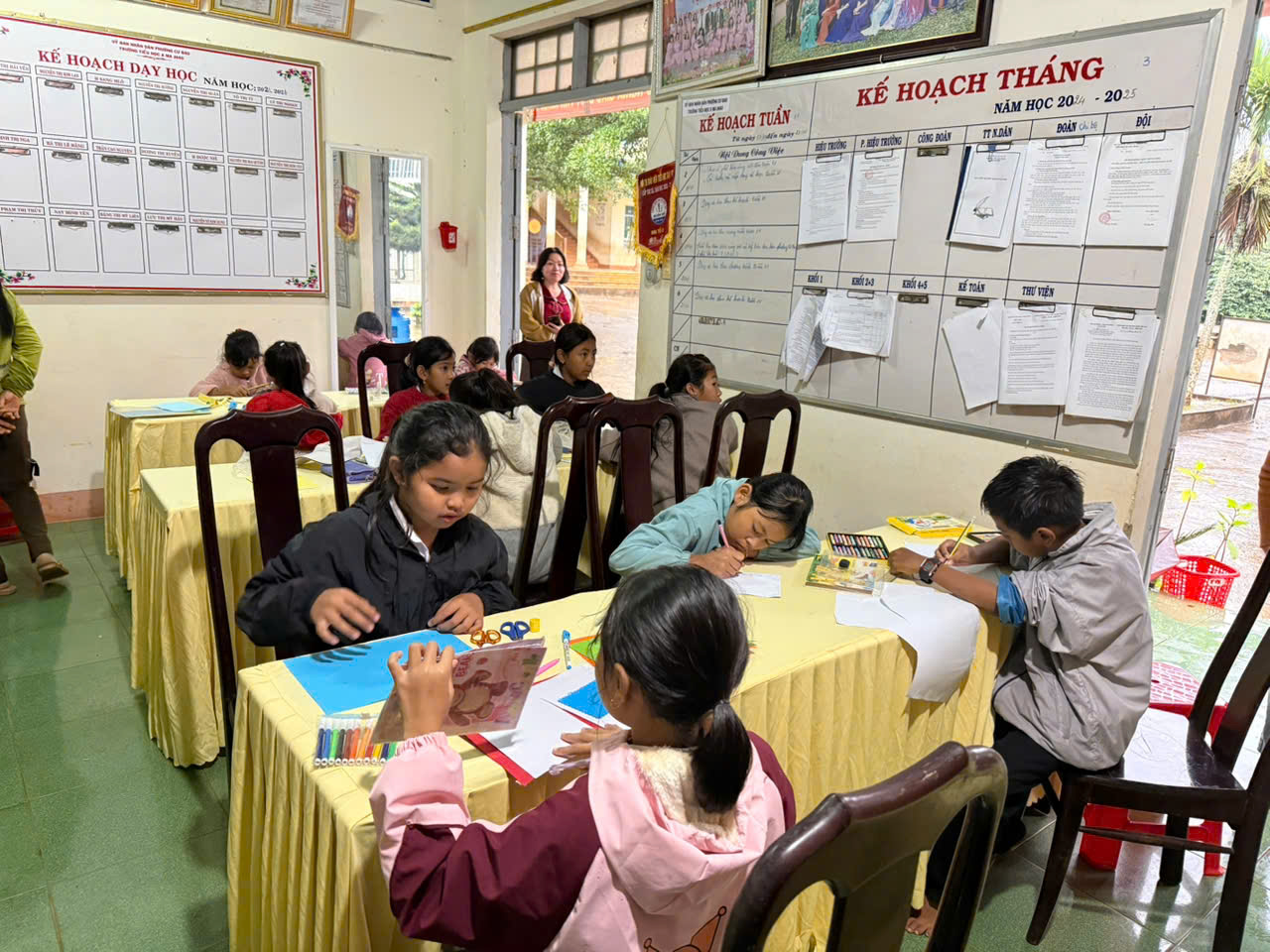 Hình ảnh đáng yêu Ngày hội đọc sách năm 2021 và Hoạt động trải nghiệm “Gian hàng xanh” của cô và trò tiểu học Ama Jhao