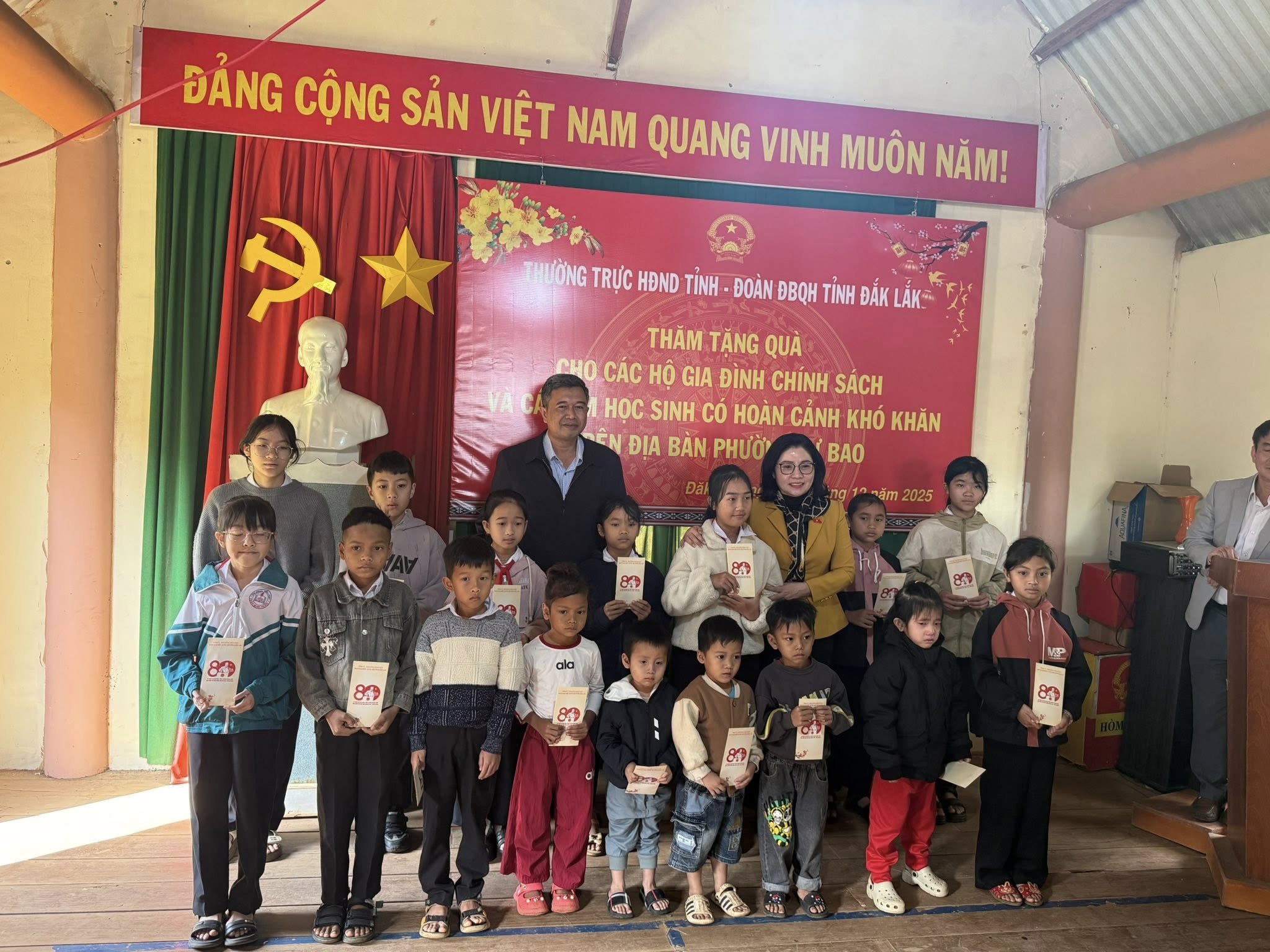Sáng ngày 30. 12. 2025 hai học sinh Liên Đội Ama Jhao nhận quà của đoàn đại biểu quốc hội tỉnh.